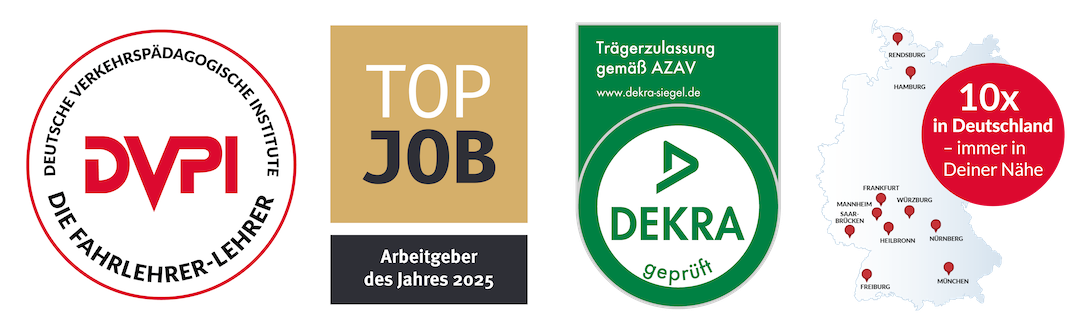 Wir unterstützen Dich vor, während und nach Deiner Fahrlehrerausbildung! Neben einer Job-Garantie und unserem Qualitätsversprechen bieten wir Dir auch diverse Online-Prüfungsvorbereitungen an. Mache Dir ein Bild von uns und besuche uns! Wir geben Dir die Möglichkeit, in einen laufenden Lehrgang hineinzuschnuppern und selbst zu sehen, wie die Lehrgänge und Seminare bei uns ablaufen.
